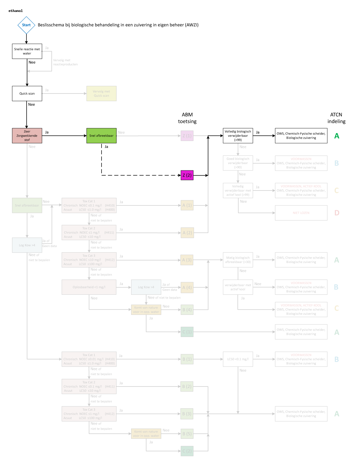 IUCLID rapporteerd een verwijdering >75%. Ruime praktijkervaring toont aan dat in een biologische zuivering volledige verwijdering wordt gerealiseerd (op een aantal zuiveringen worden ethanolhoudende concentraten zelfs doelbewust gedoseerd om de denitrificatie te bevorderen).